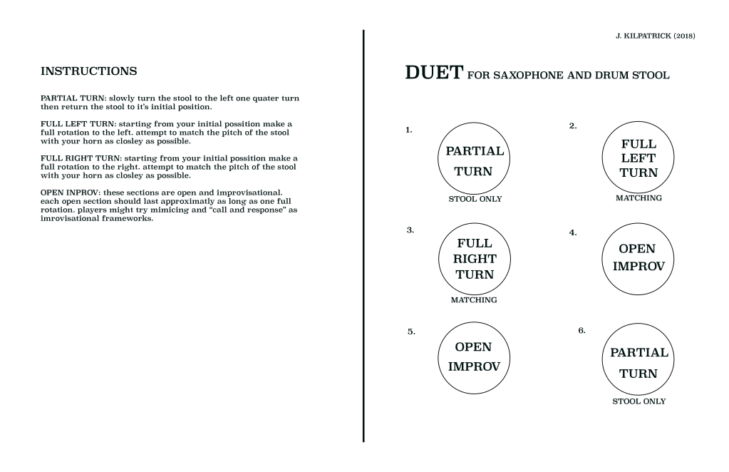 Duet for Saxaphone and Drum Stool, perfomred by Ben Zubrycki, 2018Duet for Saxaphone and Drum Stool, score, 2018